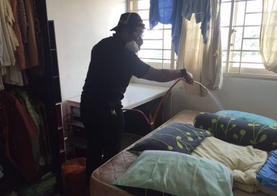 - Detailed inspection to detect for the source of bed bugs at the high risk areas like mattress and bed frames.